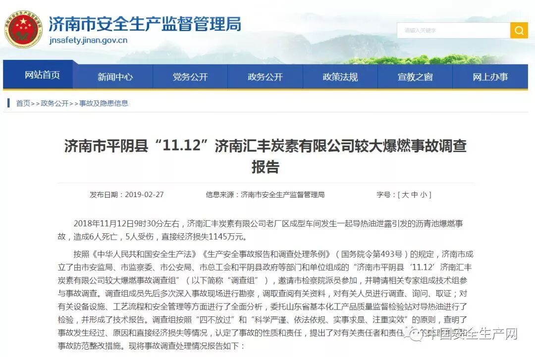 济南市安监局公布了该起事故的调查报告